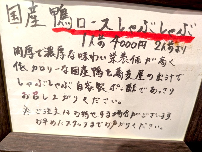 厳選合鴨しゃぶしゃぶ 開始します!!